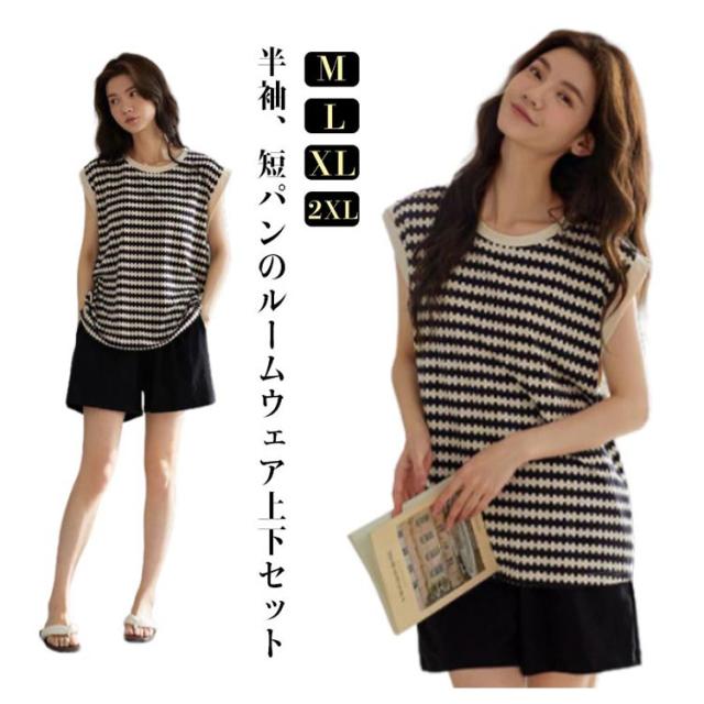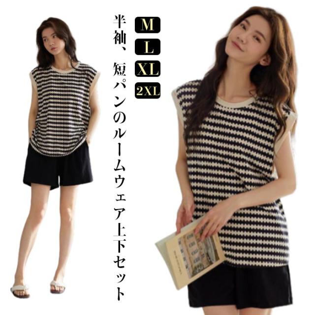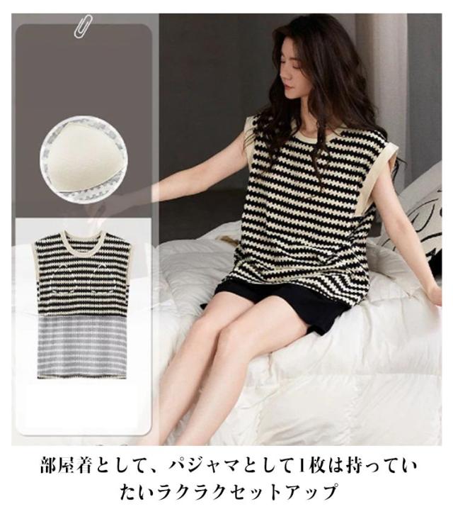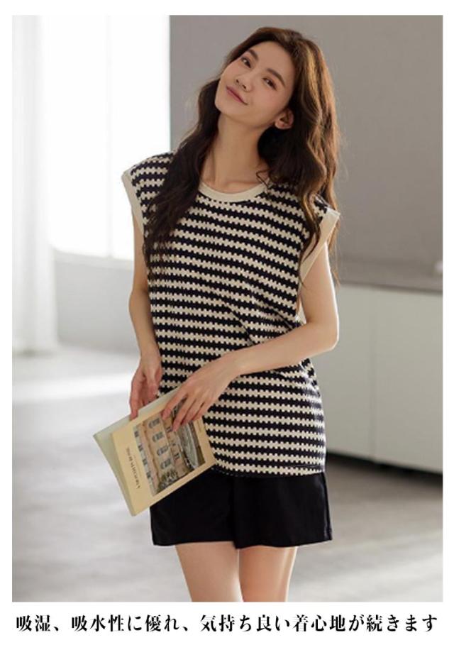レディース パジャマ ルームウェア 上下セット 部屋着 送料無料 タンクトップ セットアップ ノースリーブ 送料無料 綿 レディース 夏 ショートパンツ カップ付き ボーダー柄 寝間着 寝巻き ナイトウェア セット 寝巻 可愛い リラックスウェア プレゼント