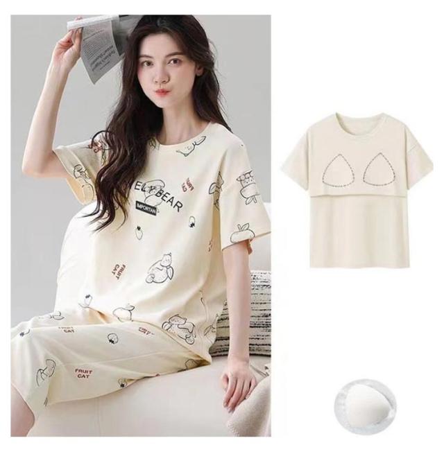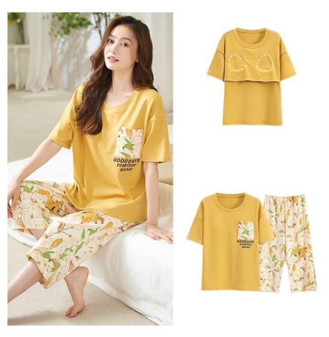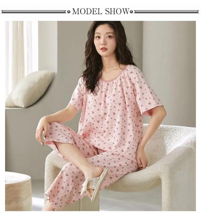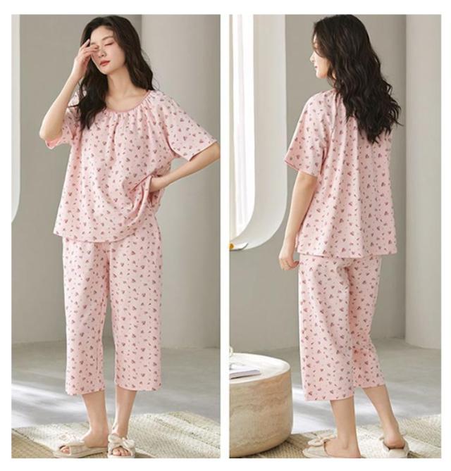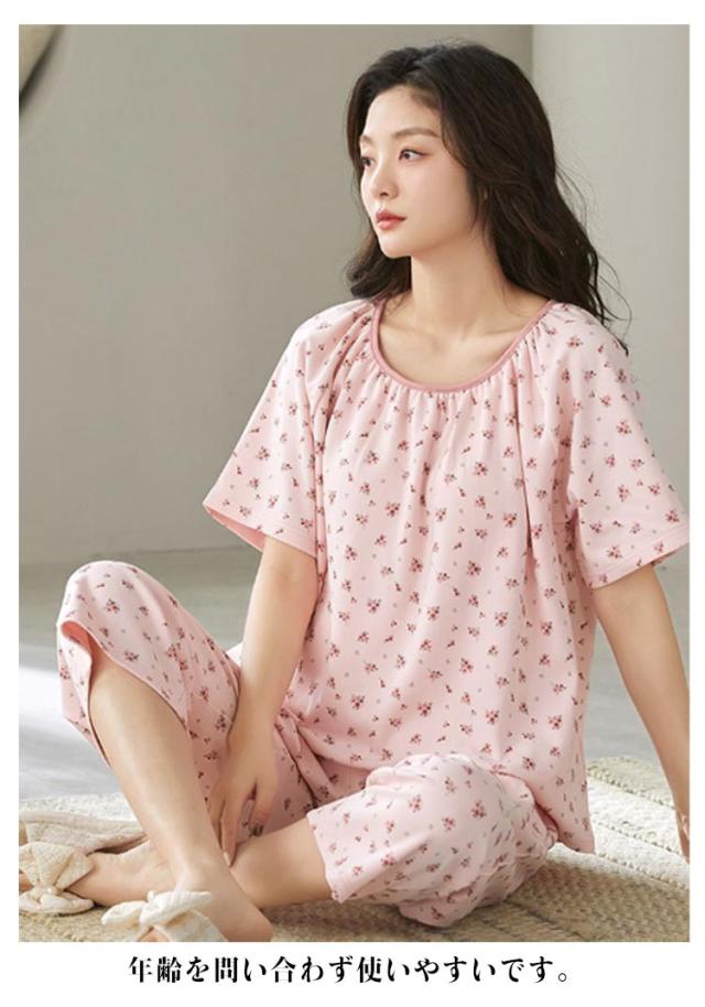 | 胸カップ付きルームウェアセットアップ服。 七分丈パンツタイプがあるので、 年齢を問い合わず使いやすいです。 柔らかく涼しい生地、通気性抜群です。 アンダーはゴムなしで、さらにリラックスできますので、特に夏はおすすめです。 | |