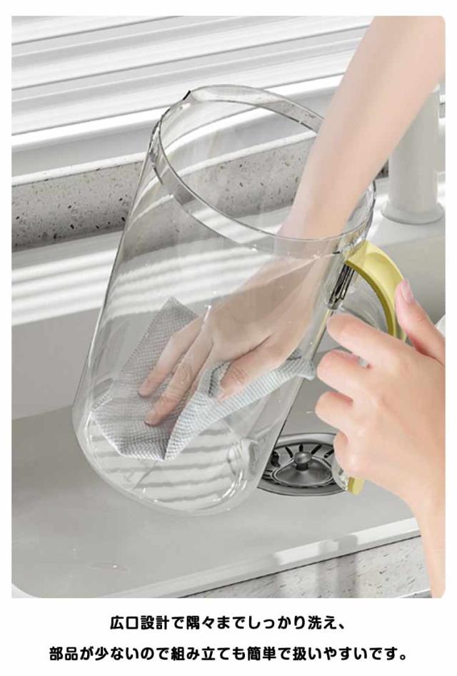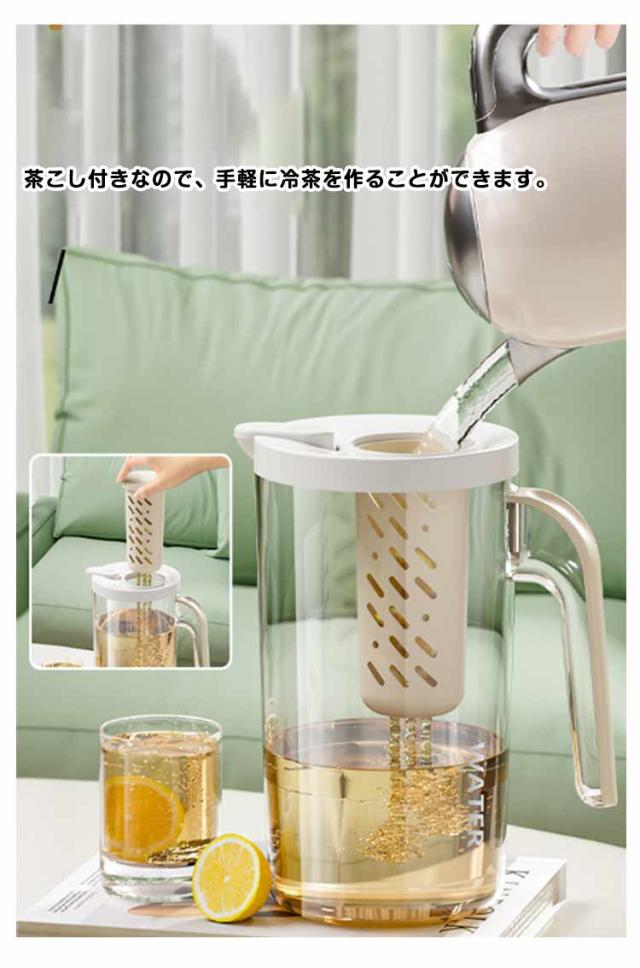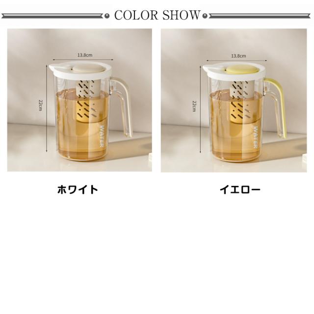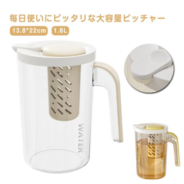 ドアポケット ワンプッシュ 冷水筒 1.8L 冷水ポット 水差し 熱湯 麦茶ポット 耐熱 茶こし ピッチャー 茶こし付き ジャグ 麦茶 ポット ピッチャー プラスチック 茶漉し クリア 軽量 家庭用 業務用 会社 事務所 水出し 洗いやすい シンプル