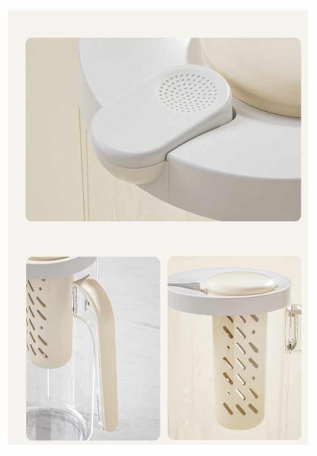 | 毎日使いにピッタリな大容量ピッチャー 様々なテーブルシーンにもあうシンプルなデザインです 広口設計で隅々までしっかり洗え、部品が少ないので組み立ても簡単で扱いやすいです。 茶こし付きなので、手軽に冷茶を作ることができます。 冷蔵庫のドアポケットと野菜室に収まりやすいです。 | |