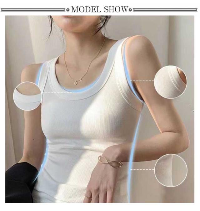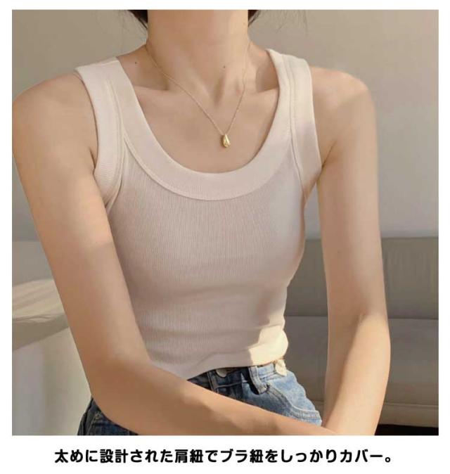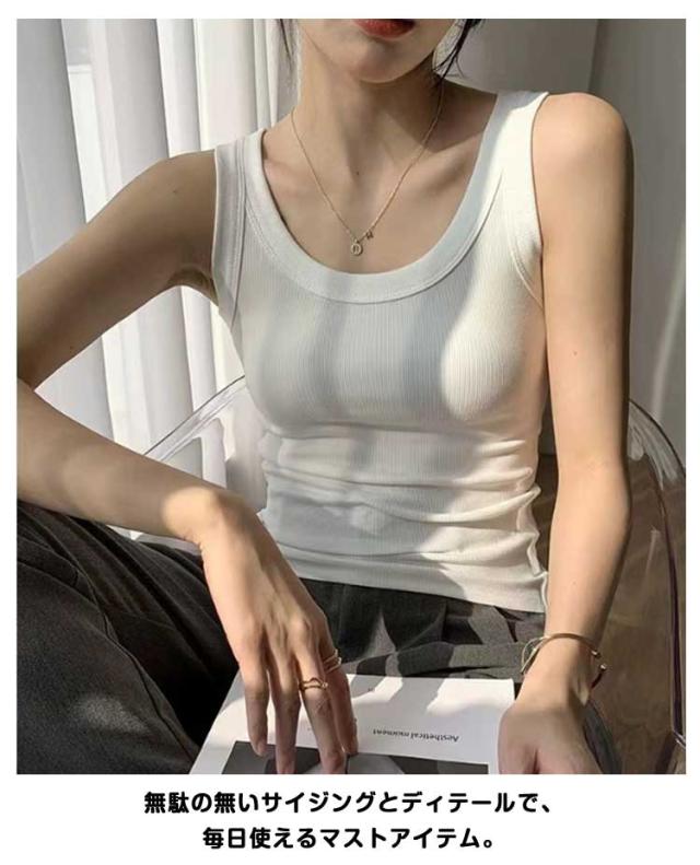 2枚セット タンクトップレディース トップス 丸首 カットソー タンクトップ Uネック インナー コットン インナー タンクトップ 下着 無地 リブ 大きいサイズ 細身 ストレッチ 重ね着 キャミソール レイヤード 2枚セット 高伸縮 カジュアル