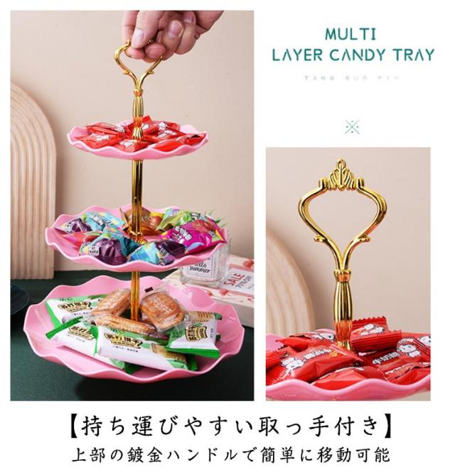 | おしゃれな3段ケーキスタンドで、スイーツ時間をもっと上品に♪ 果物やお菓子を美しく分けて盛り付けられる万能スタンド 3段分けて収納・ディスプレイ:フルーツ・キャンディ・お菓子・ナッツなどをすっきり整理 持ち運びやすい取っ手付き:上部の鍍金ハンドルで簡単に移動可能 厚手PP素材使用:丈夫で劣化しにくく、割れにくい構造 縁飾りデザイン:滑らかで手触りの良い花びら風のエッジ 組み立て式で収納も便利:使わないときは簡単に分解して片付け可能 しっかりとした底台:安定感のある設計で安心して使用可能 | |