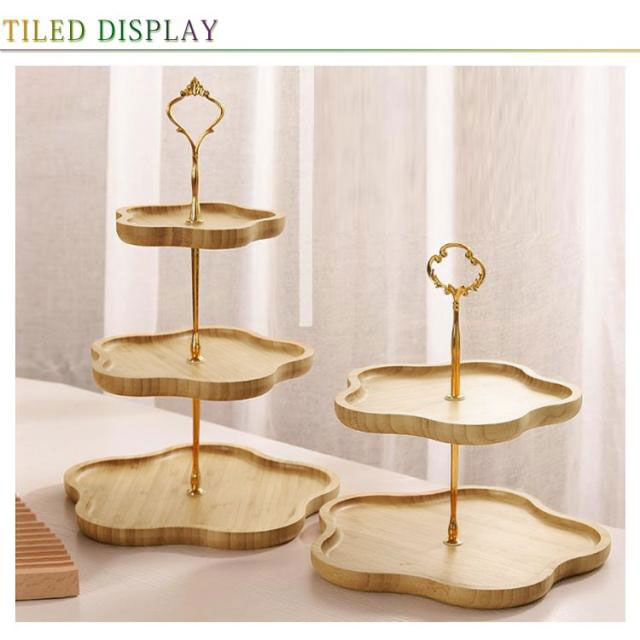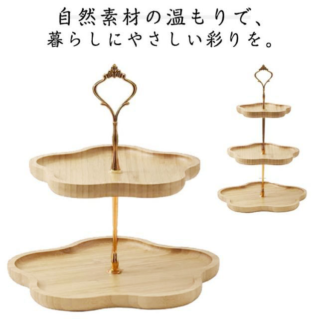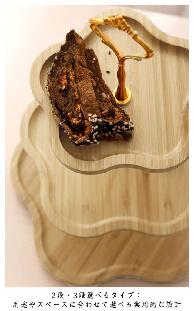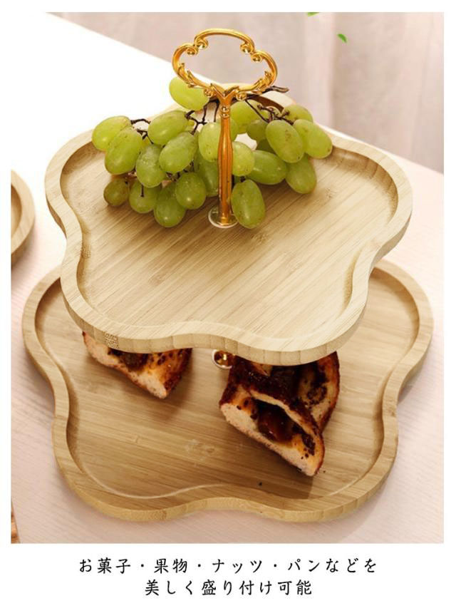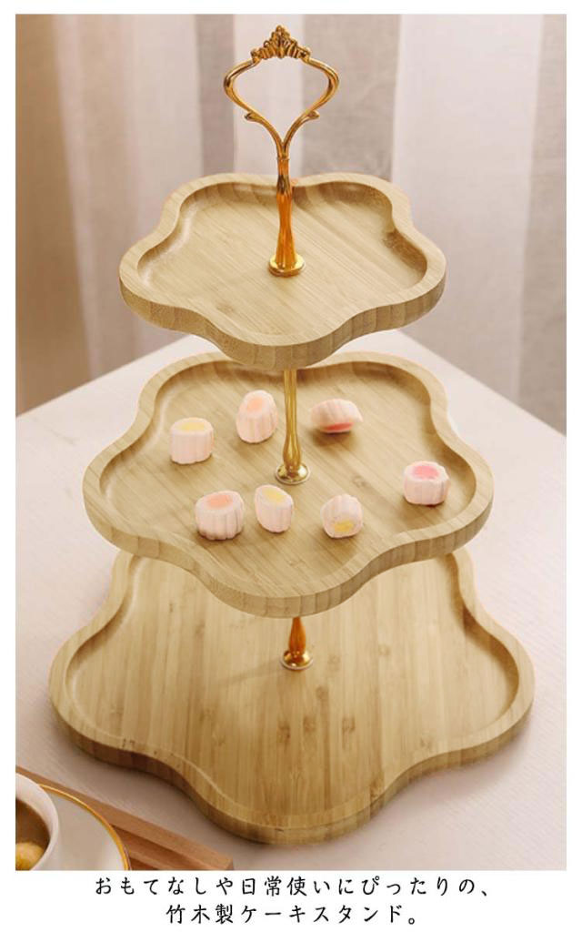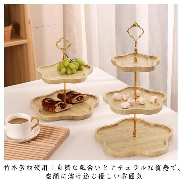 竹木製 花型 アフタヌーンティー 2段・3段 スイーツスタンド 竹木製 組み立て式 お菓子トレー ナチュラル おしゃれ デザートプレート フルーツトレイ スタンド カフェ パーティー