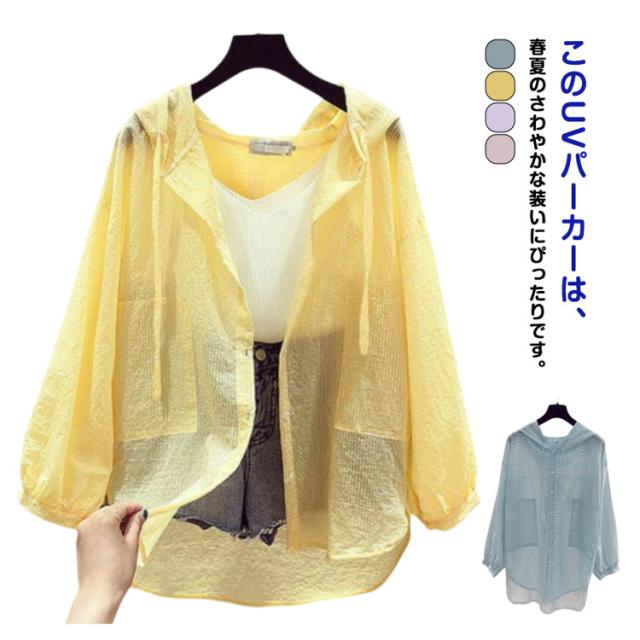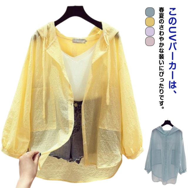 UVカットパーカー シアーブルゾン UVカット シアー カーディガン シアートップス レディース uvパーカー パーカー シアー素材 パーカー シアー シアーブルゾン シアーシャツ レディース 紫外線対策 アノラック 涼しい 夏物 軽い