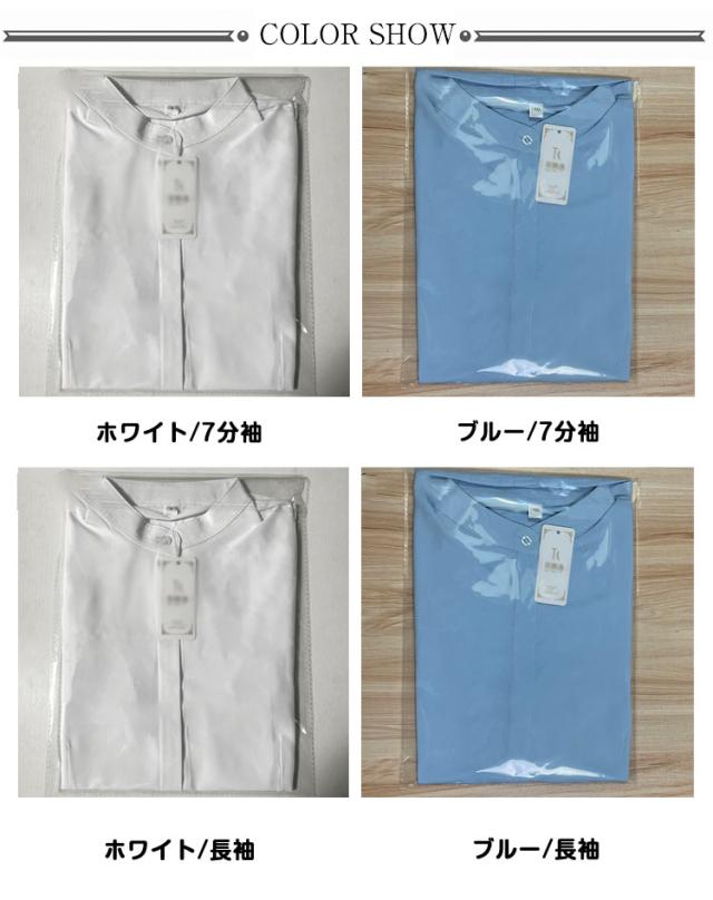 | 色 | ホワイト/7分袖 ブルー/7分袖 ホワイト/長袖 ブルー/長袖 |
