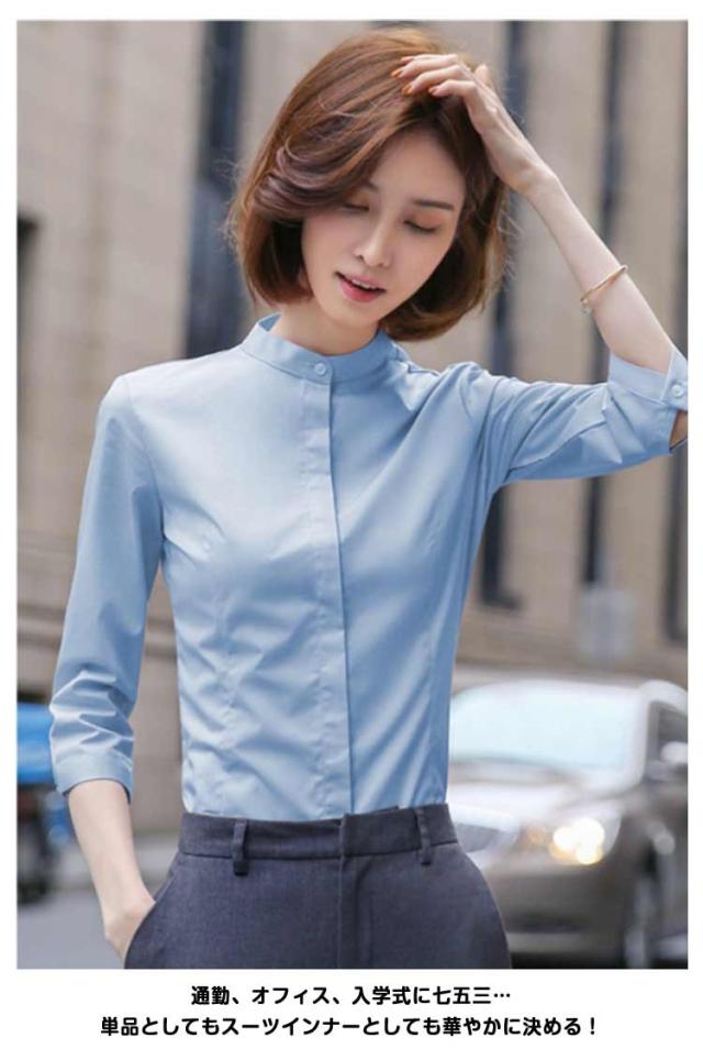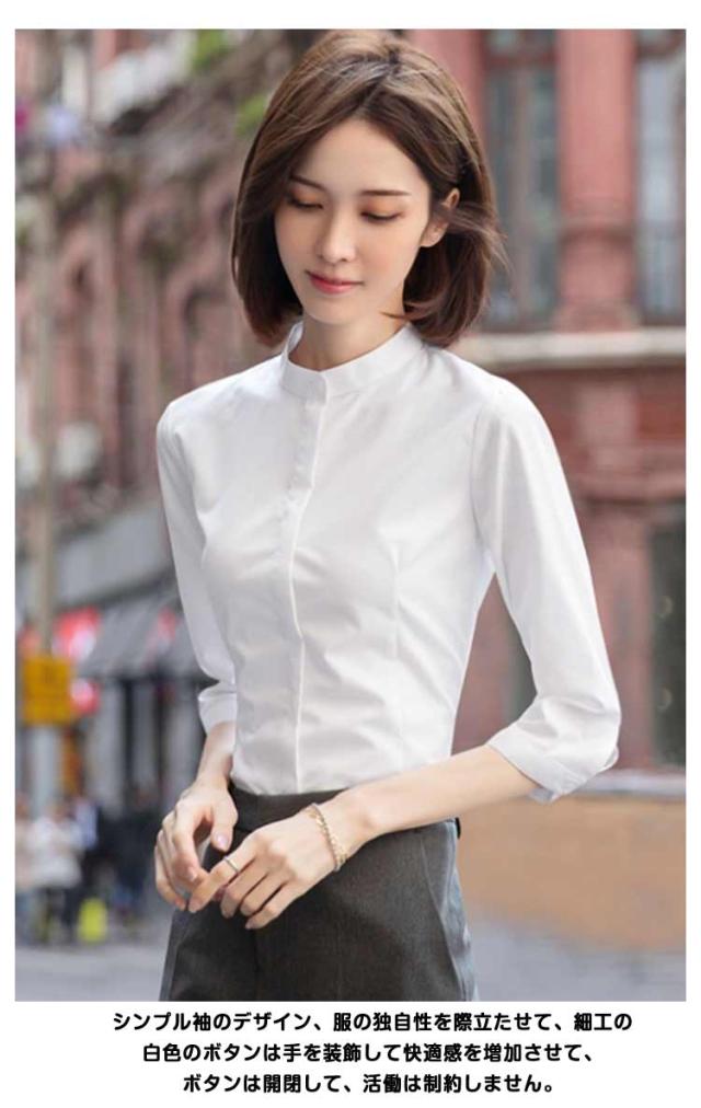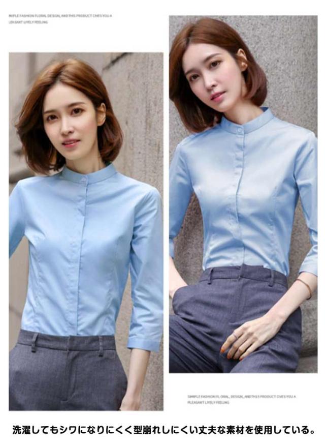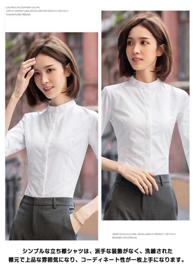 OL ワイシャツ 大きサイズ シャツ 長袖シャツ レディース 長袖 スタンドカラーシャツ ワイシャツ 立ち襟シャツ ブラウス スーツシャツ 七分袖シャツ 秋 フォーマル 面接 オフィス ビジネス 無地 就職 七分袖 仕事着 着痩せ シャツ 春 夏 通勤 トップス