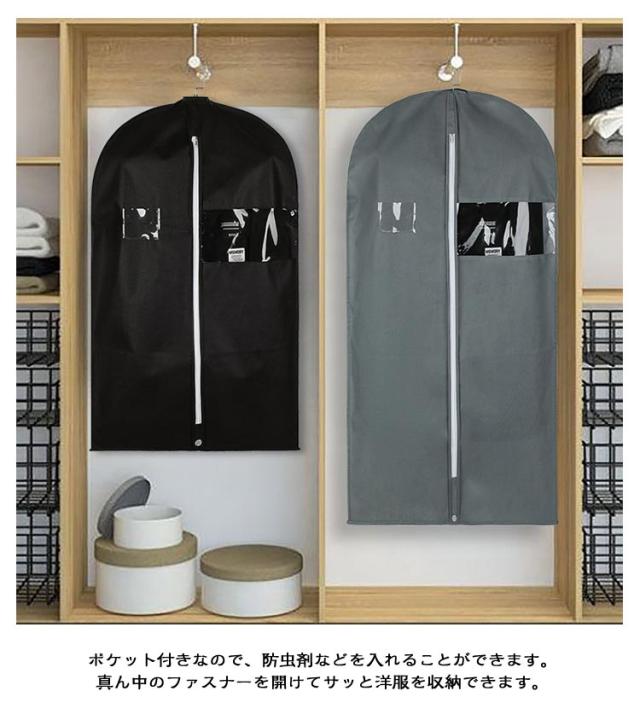 衣類収納袋 不織布 【2枚組】洋服カバー 衣類カバー ファスナー ポケット付き スーツ スーツカバー 防カビ ショート 防虫 埃よけ 防湿 通気性 ロング ほこり防止 収納袋 コート ジャケット ワンピース カバー 衣類収納 【2枚組】洋服カバー ハンガーラック クローゼット収納