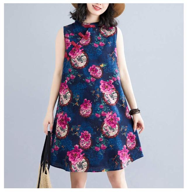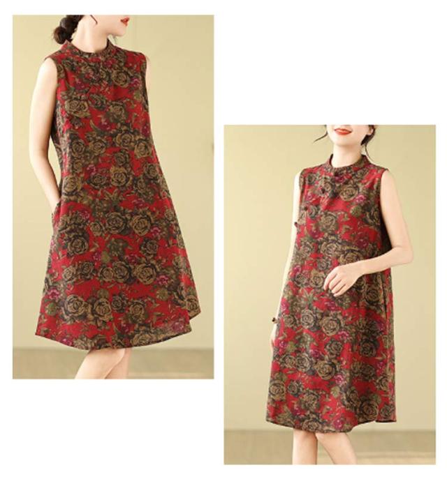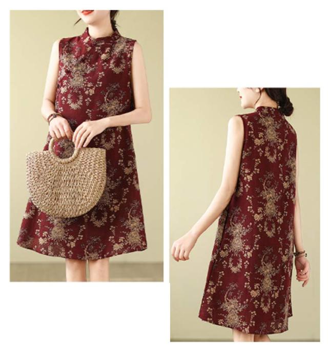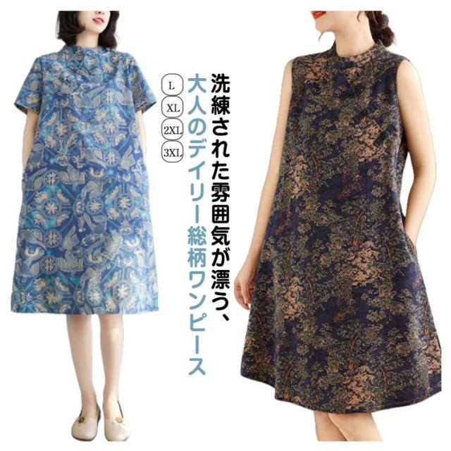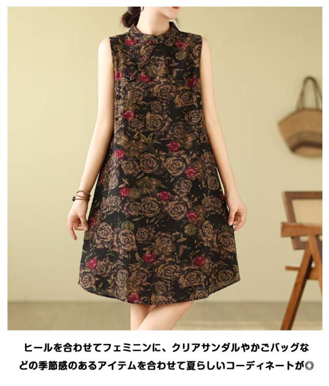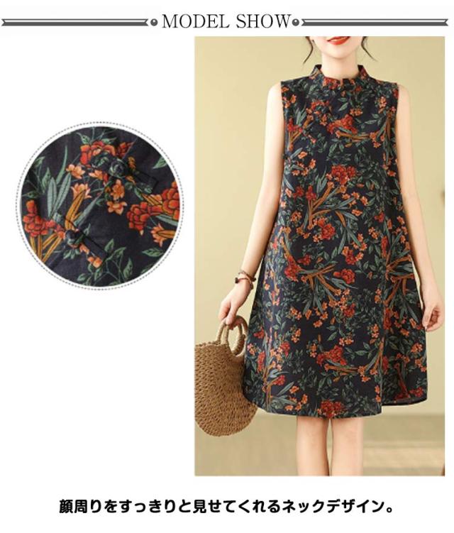 ワンピース ワンピース ノースリーブ 可愛い ミモレ丈 プリント 総柄 春 体型カバー 膝上丈 花柄 大人 ミディアム丈 ゆったり 綿麻調 夏 着?せ エレガント シンプル カジュアル Aライン 女性 きれいめ 夏服 かわいい 袖なしワンピース