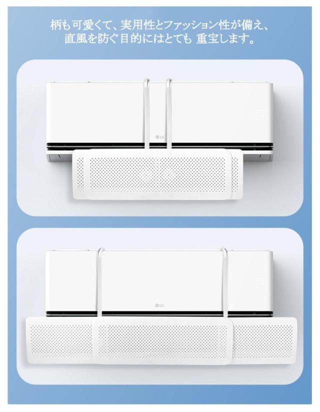 | エアコンの直撃風を解消する風よけカバーです ぶら下げ式 のデザインなので、落下防止でき、安心にお使えます 取り付けやすい、簡単に調整できます 風向き角度調節可:180度回転可 通気穴がついて、結露改善ことができます 冷房・暖房のどちらにも使用でき、オールシーズン対応できます エアコンからの直撃風を解消し、快適な室内環境を作ってくれます 風邪や頭痛などの症状が予防できて、家族の健康を守ることができます 柄も可愛くて、実用性とファッション性が備え、直風を防ぐ目的にはとても 重宝します | |