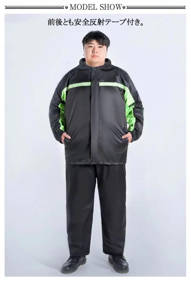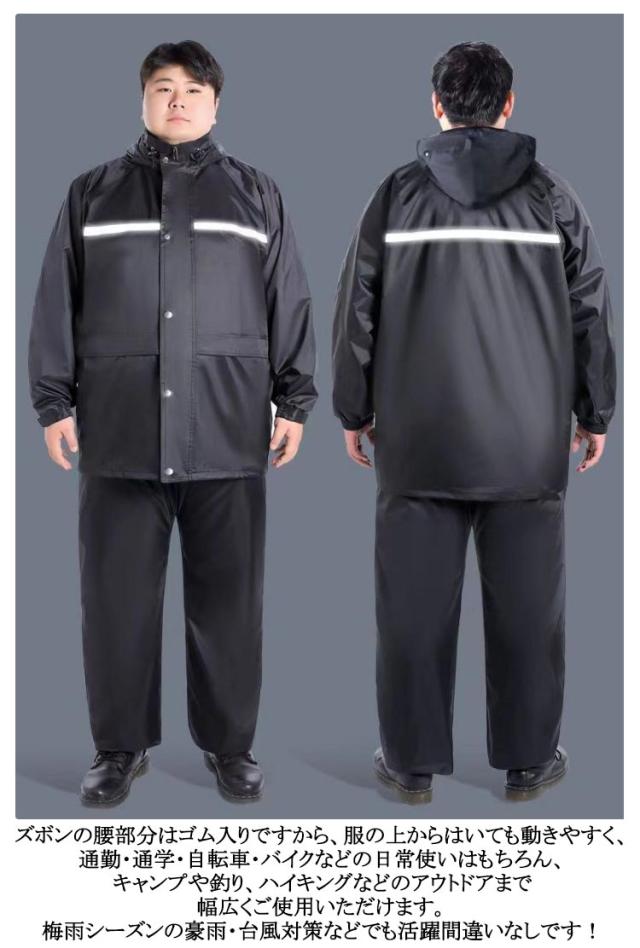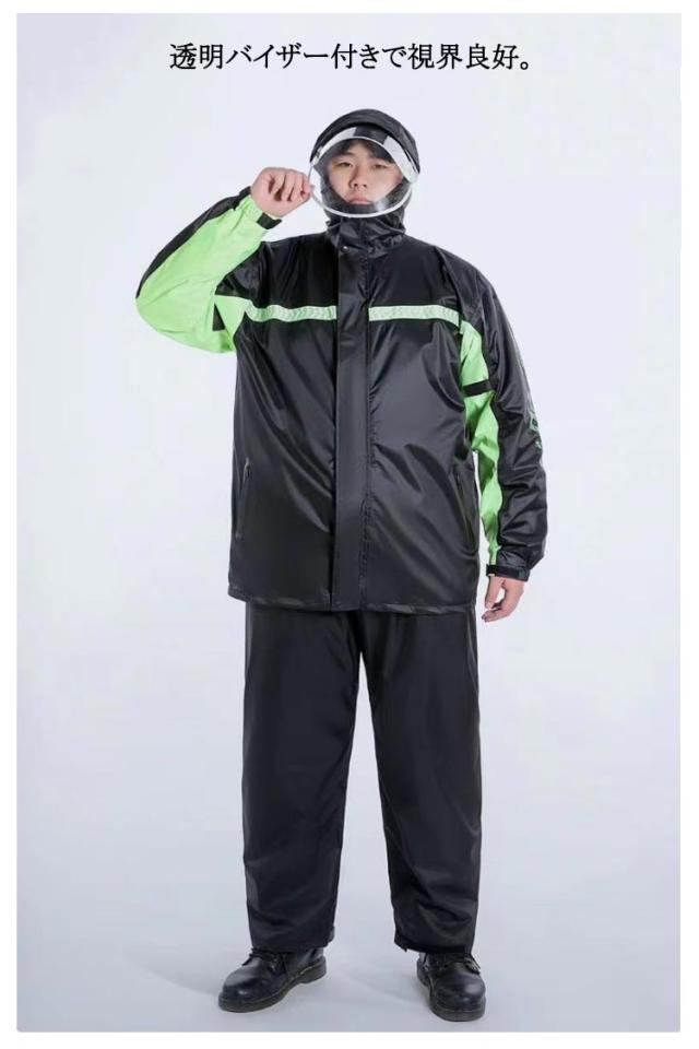 2点セット レインコート 上下セット メンズ レインスーツ 梅雨 反射テープ付き 大きいサイズ ジャケット 作業着 ビッグサイズ レディース 長袖 アウトドア ロングパンツ 二重透明バイザー付き 防水 防災 自転車 バイク 通学 通勤 豪雨 メッシュ裏地 ビッグサイズ カッパ