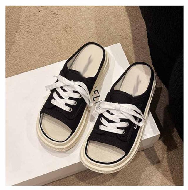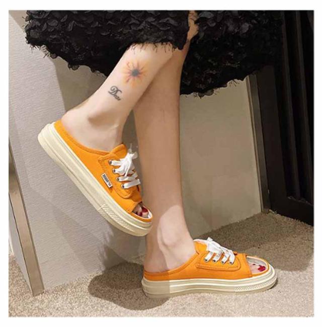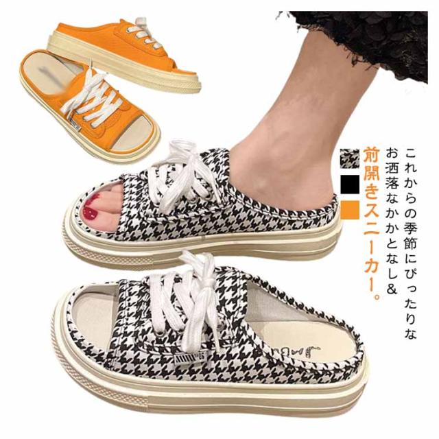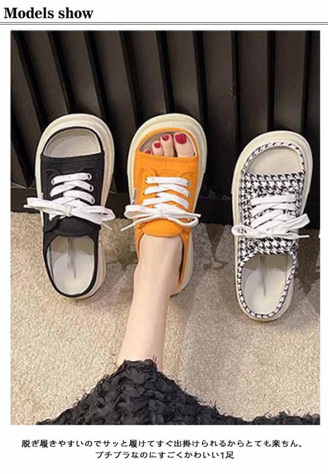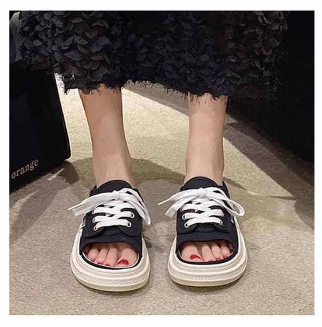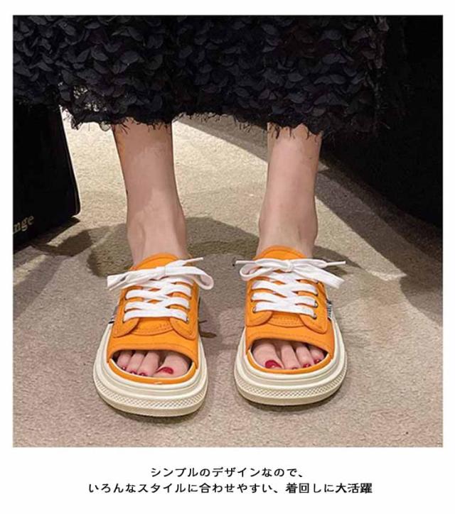 オープントゥ シューズ 靴 厚底 スリッポン かかとなし 軽量 歩きやすい スニーカー キャンバス 厚底サンダル 前開き 前あき 厚底スニーカー 履きやすい サンダル 美脚 疲れない コンフォートシューズ キャンバス 春夏 カジュアル プラットサンダル