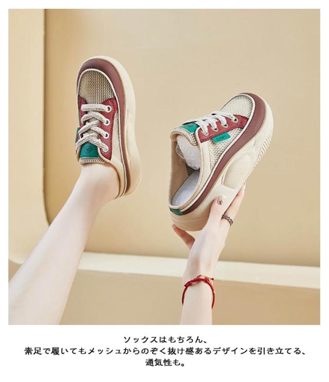 メッシュスニーカー メッシュ サンダル スニーカー 春 おしゃれ サボ レディース 厚底スニーカー 踵なし かかとなし かかとなし 厚底 スリッポン 靴 シューズ 厚底サンダル メッシュサンダル 履きやすい 歩きやすい 通気性