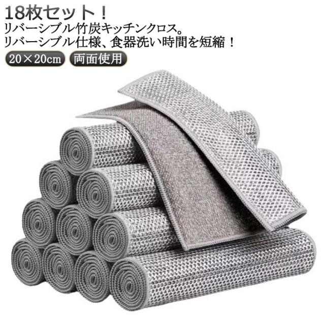 竹炭 両面使用 お手入れ簡単 リバーシブル 20×20cm 銀糸入り キッチンタオル 18枚セット ふきん 耐熱 メッシュふきん 防油 ワイヤーふきん 18枚セット 繰り返し使用 食器洗い キッチンクロス 竹炭キッチンクロス 吸水 速乾 ワイヤーふきん
