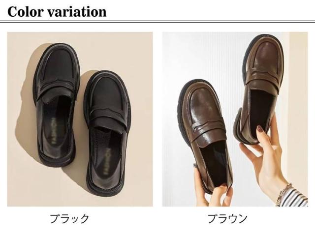 | 学生靴に♪通学に♪ローファー。 約5.5cmヒールでスタイルアップ!約5.5cmのヒールと前底ストームでリーズナブルで美脚&可愛いの絶妙なバランス。 合成皮革素材なので、雨の日にも強く、滑りにくいゴム底で安定感抜群! | |