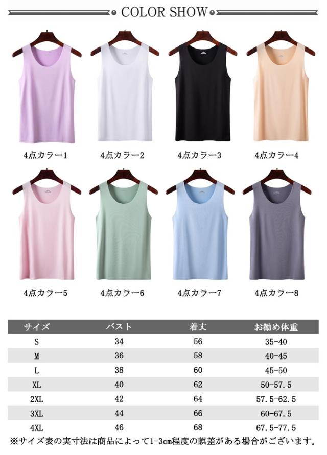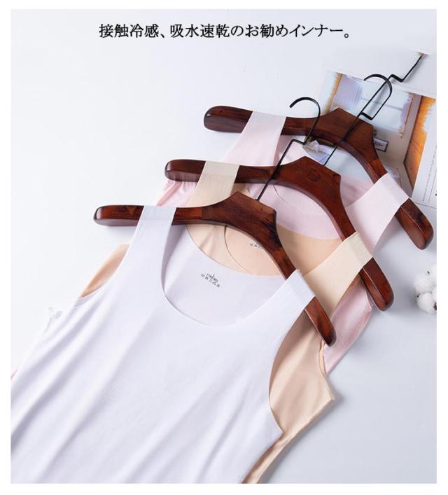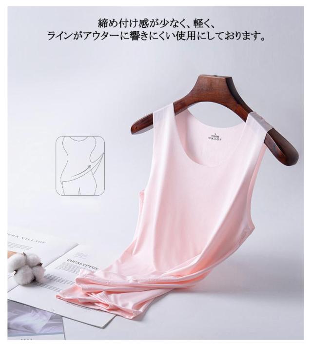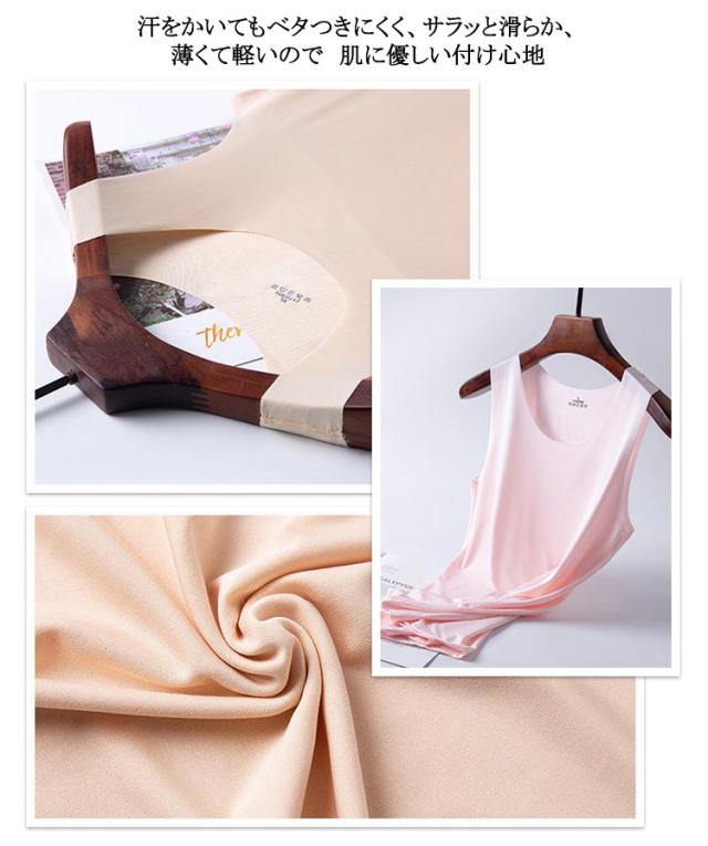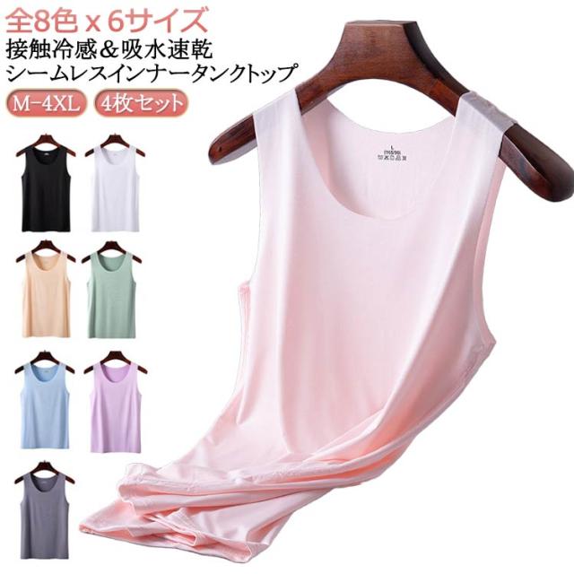 | 4枚セット!接触冷感&吸水速乾シームレスインナータンクトップ! 全8色x6サイズ まるですべ肌、薄手のシームレス素材で、着ていないかのような感覚の肌着です。 汗をかいてもベタつきにくく、サラッと滑らか、薄くて軽いので 肌に優しい付け心地 接触冷感、吸水速乾のお勧めインナー。 トップスやTシャツ カットソー、チユニックなどのインナーに♪ 締め付け感が少なく、軽く、ラインがアウターに響きにくい使用にしております。 | |