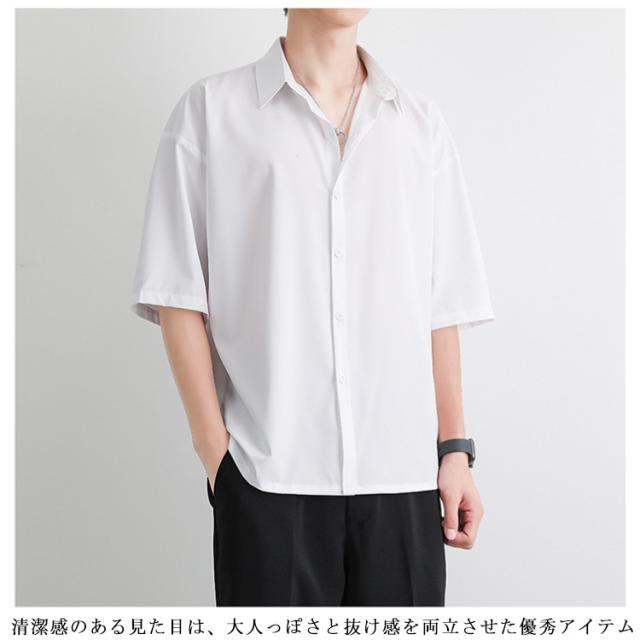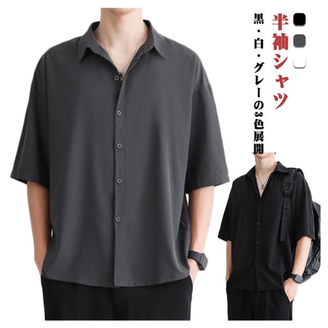 通勤 開襟シャツ 半袖シャツ メンズシャツ 夏用 ゆったり 韓国ファッション カジュアルシャツ トップス 薄手 通学 半袖シャツ 無地シャツ サマートップス 大人カジュアル きれいめ おしゃれ 快適 柔らか 軽量 半袖トップス 黒 白