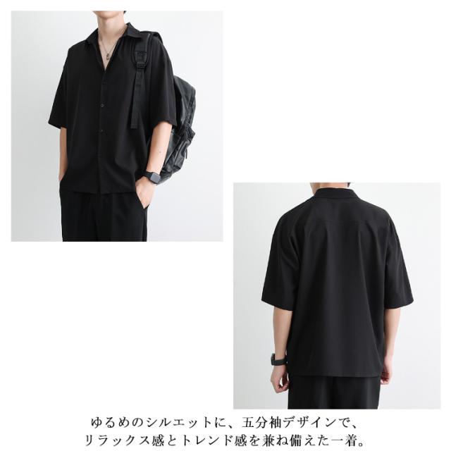 | 黒・白・グレーの3色展開 ゆるめのシルエットに、五分袖デザインで、リラックス感とトレンド感を兼ね備えた一着。 夏の暑さにぴったりな「アイスシルク素材」を使用した、ひんやり心地よい半袖シャツが登場! 通学・通勤・ちょっとした外出にも合わせやすく、着回し力抜群。 肌に優しい柔らかな素材感で、汗ばむ季節も快適な着心地をキープ◎ 開襟デザインなので、一枚でラフに着るのはもちろん、インナーにTシャツを重ねたレイヤードスタイルもおすすめ 清潔感のある見た目は、大人っぽさと抜け感を両立させた優秀アイテム | |