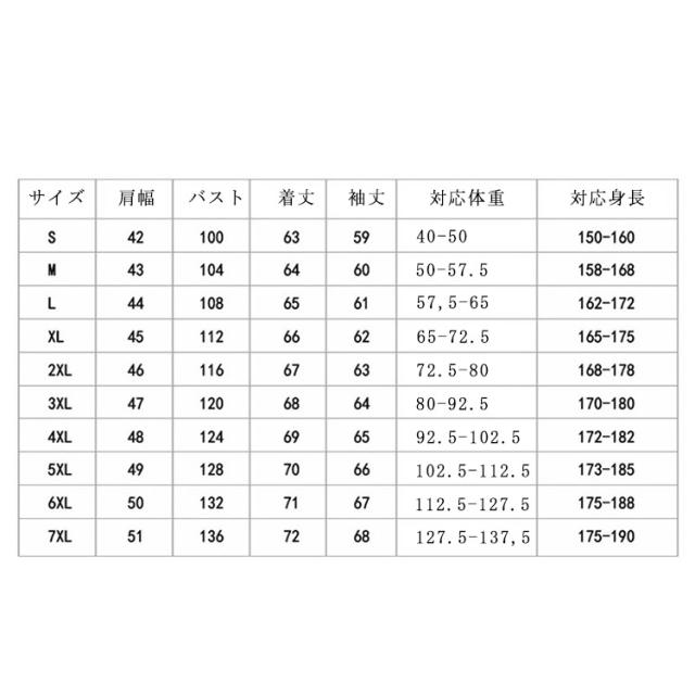 | サイズ | S M L XL 2XL 3XL 4XL 5XL 6XL 7XL |