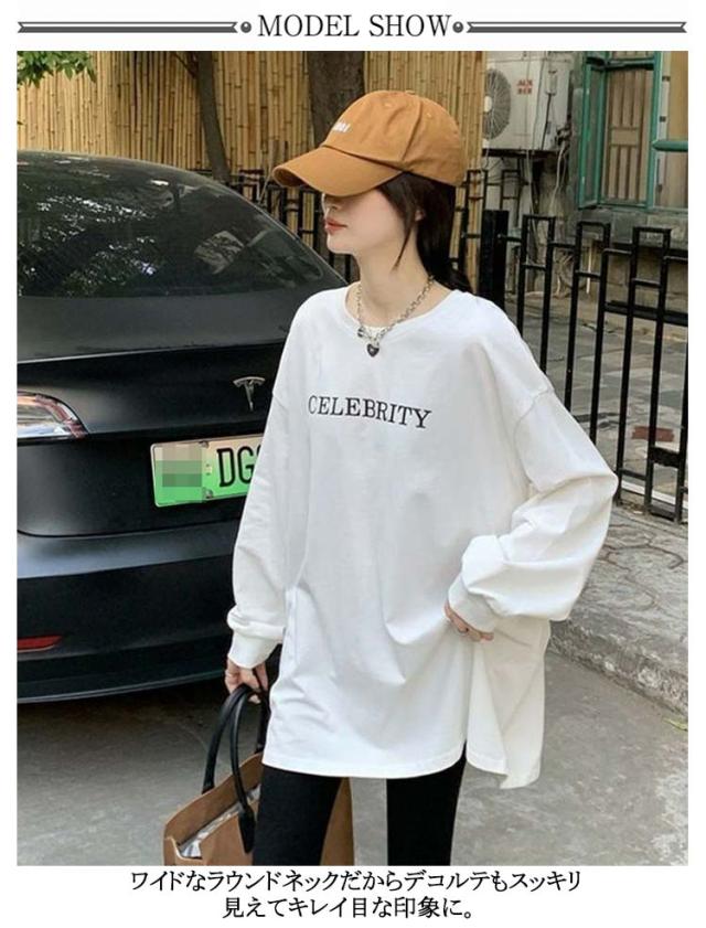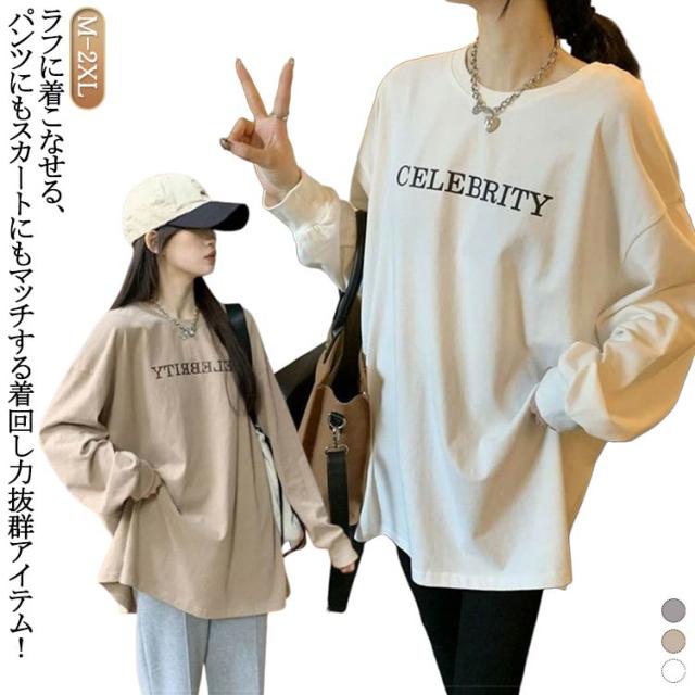 ティーシャツ ロングtシャツ 長袖tシャツ ロングtシャツ 長袖 Tシャツ ルームウェア レディース 英字 きれいめ ロンT 大きいサイズ ルーズ インナー トップス カジュアル 体型カバー 大人 プリント お尻が隠れる カットソー シンプル M L XL