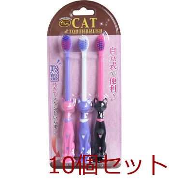 ピタット ファニー歯ブラシ 吸盤付 ネコ 3本