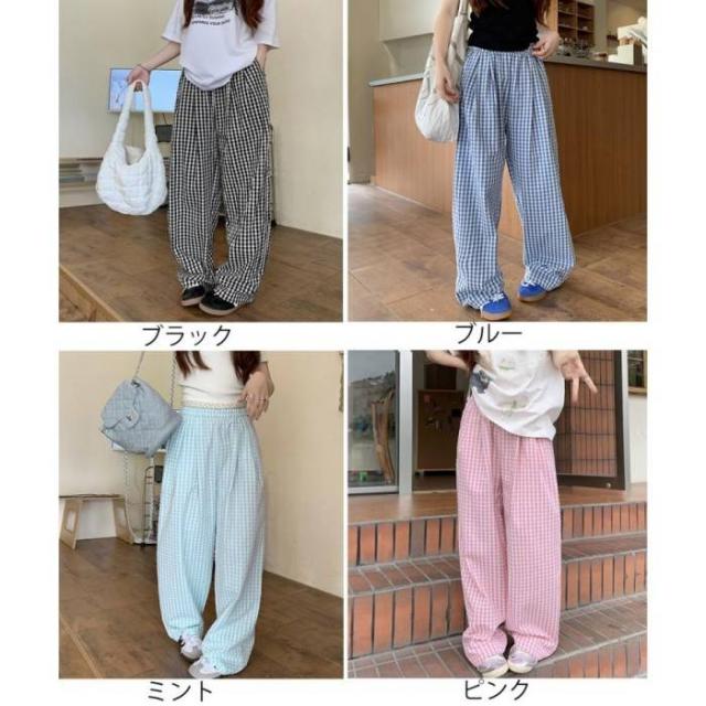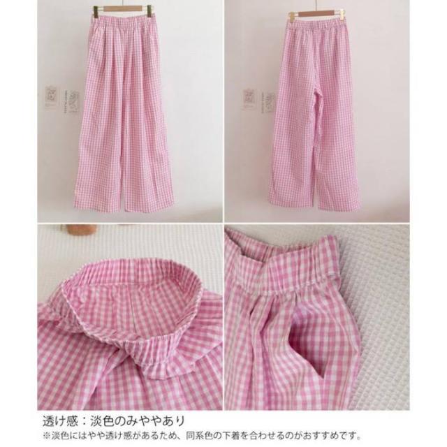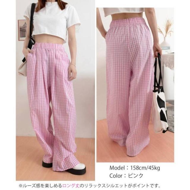 かわいらしいギンガムチェック柄の配色が春夏モードを盛り上げるワイドパンツ。