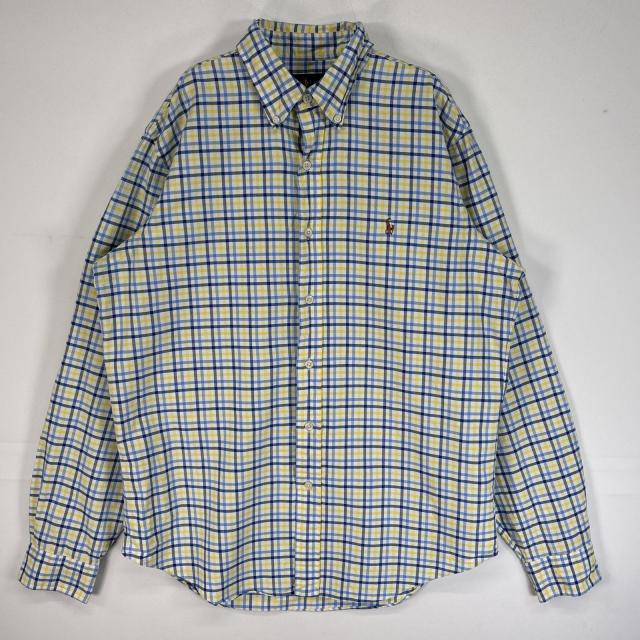 古着 ラルフローレン RALPH LAUREN 長袖シャツ チェック ロゴ 刺繍 ボタンダウン M ブルー系 マルチカラー メンズ