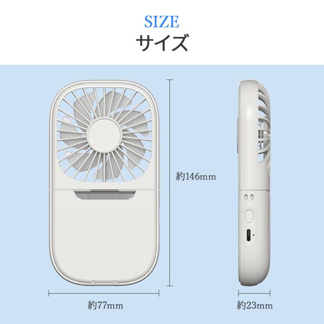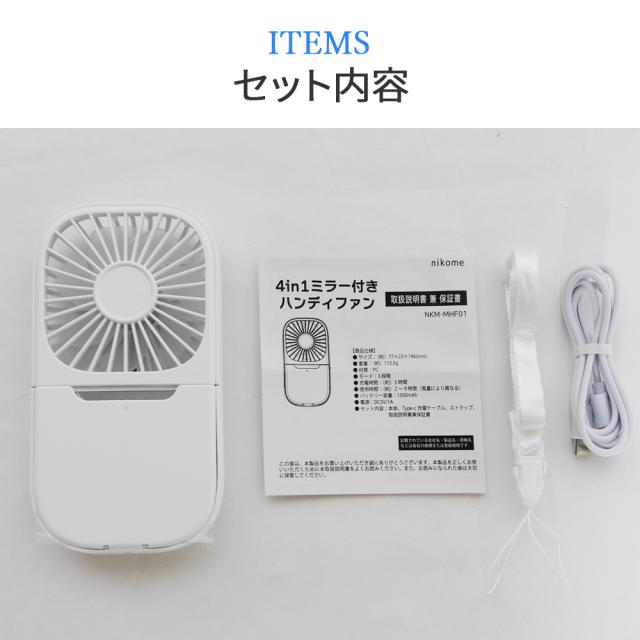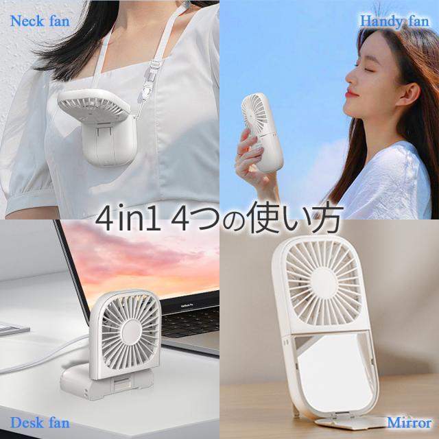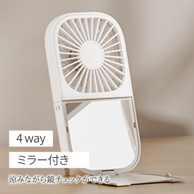 ハンディファン ミラー付き ミニ扇風機 3段階風量 小型扇風機 手持ち扇風機 コンパクト 折りたたみ シンプル ネックファン 鏡 薄型 卓上 軽量 静音 nikome 4in1ミラー付ハンディファン NKM-MHF01