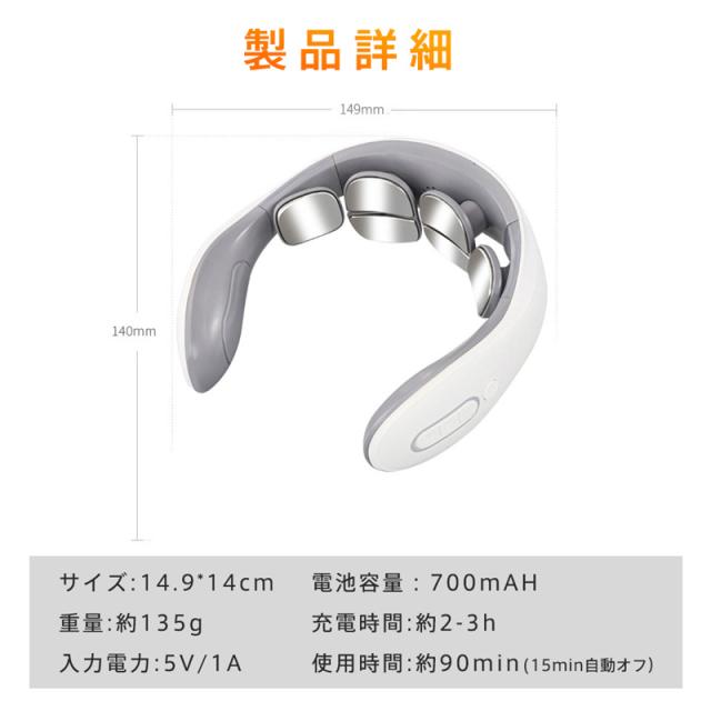 EMSで首をマッサージ、5つのモードがあり、ボタンで簡単にモード変更することが可能
