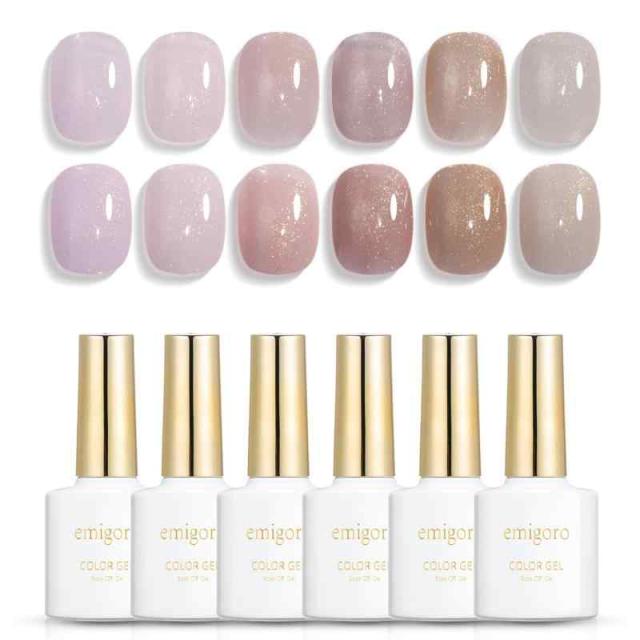 emigoro ジェルネイル ラメ キラキラジェル グリッタージェルネイル カラージェル セルフネイル 細かいゴールドラメ ラメ入りジェル 6色セット uv/led対応(AP-ラメ入りジェル)