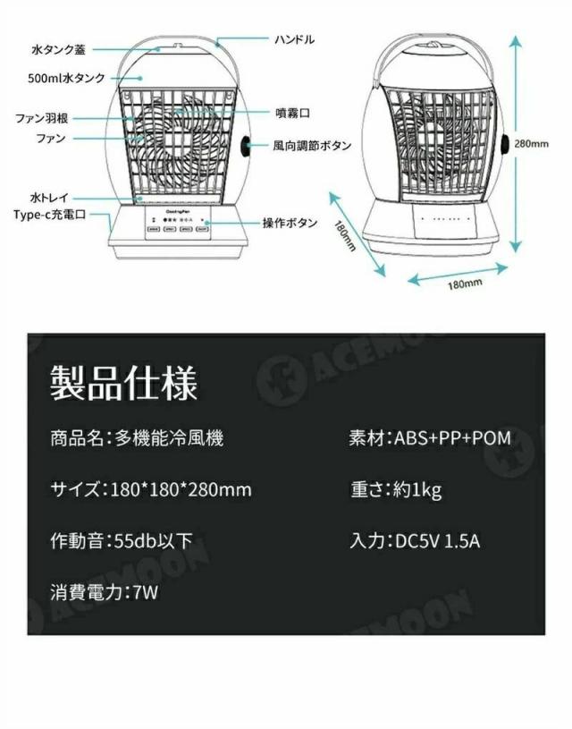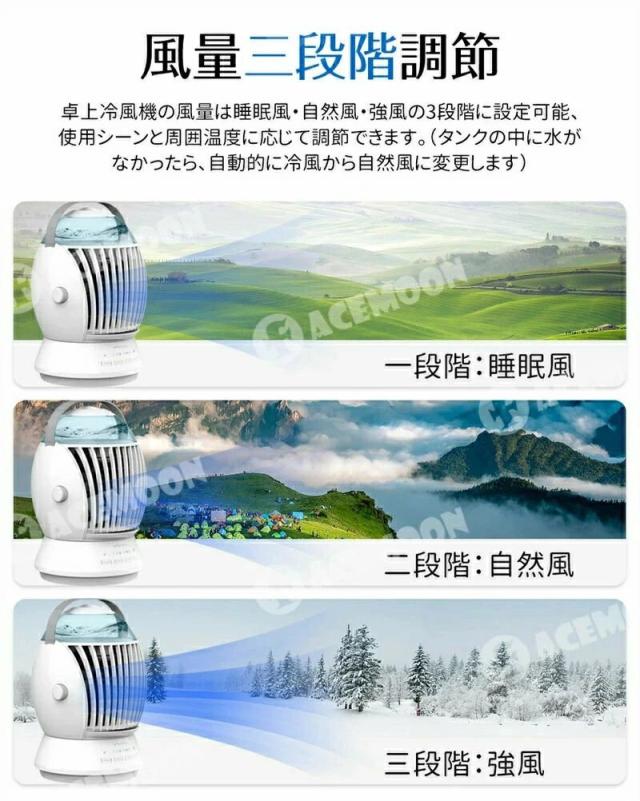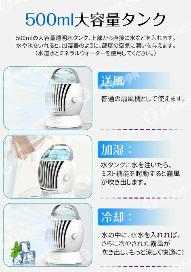 卓上扇風機 扇風機 冷風機 ミスト機能 3段階調節 首振り機能 ミニ扇風機 クーラー 冷風扇 小型 強力 USB給電 500ml大容量タンク