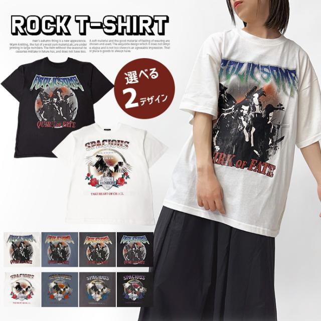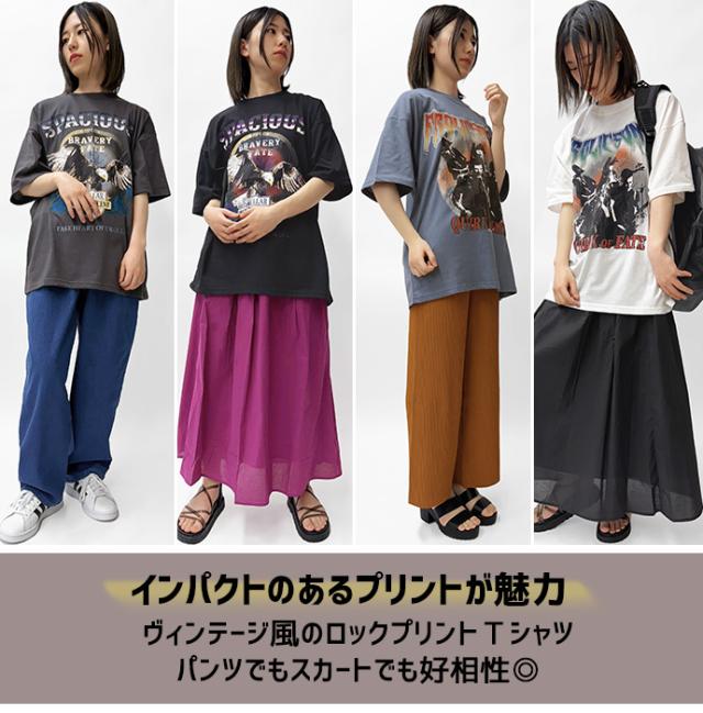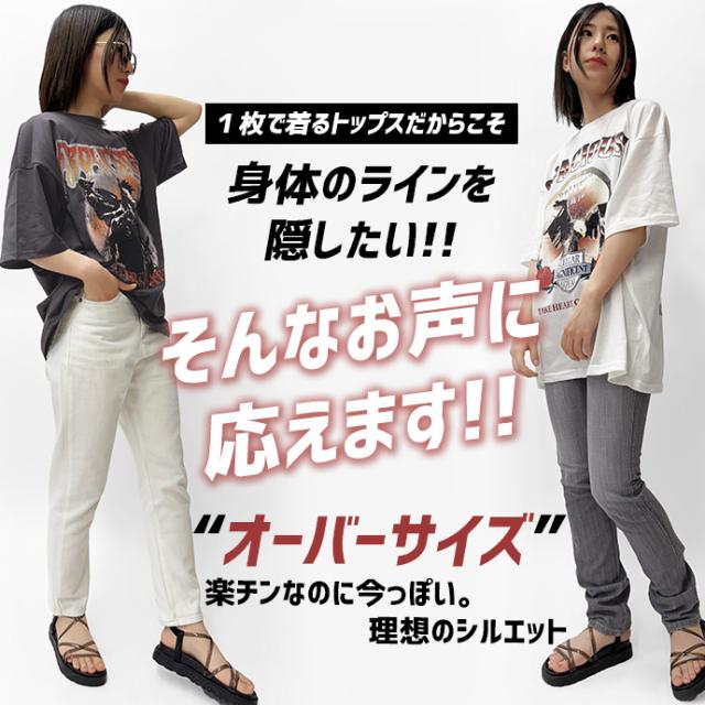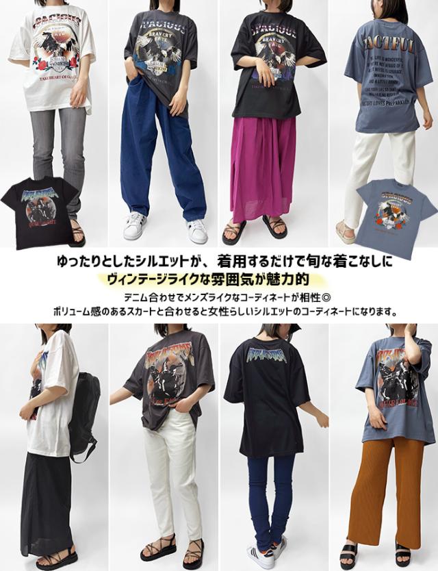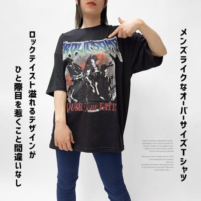 Tシャツ ロンT 半袖 tシャツ ロックTシャツ フェスTシャツ バンドTシャツ オーバーサイズ ゆったり プリント 転写プリント ロゴ レディース 送料無料