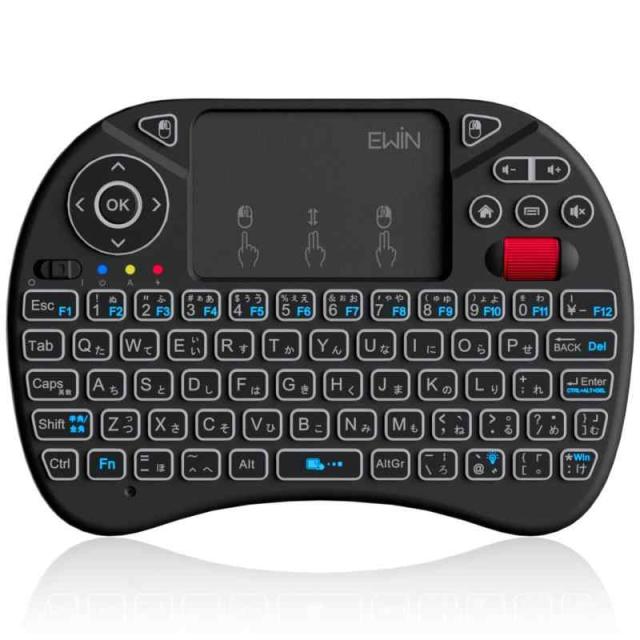 Ewin ミニキーボード ワイヤレス 2.4GHz タッチパッド&マウスホイール搭載 日本語配列 8色バックライト マウス一体型 USBレシーバー付き 超小型 ポータブル Mini Keyboard TV/PC対応