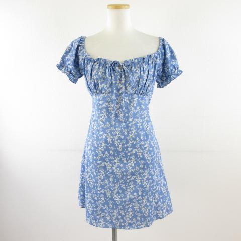 【中古】Dazy ワンピース ミニ 半袖 花柄 青 M *T241 レディース