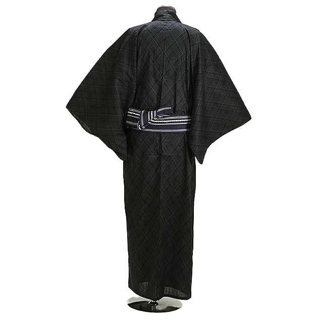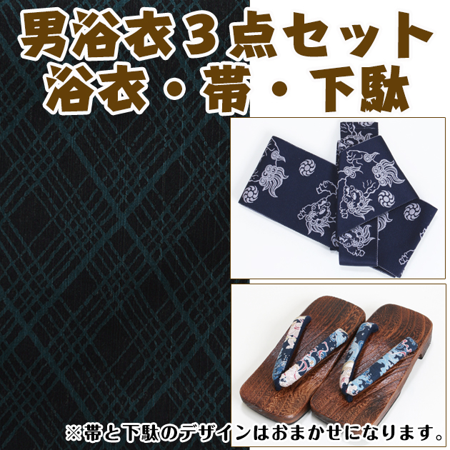浴衣 男性 レンタル NT-my219 浴衣3点セット☆浴衣・帯・下駄☆黒/濃緑菱 送料無料
