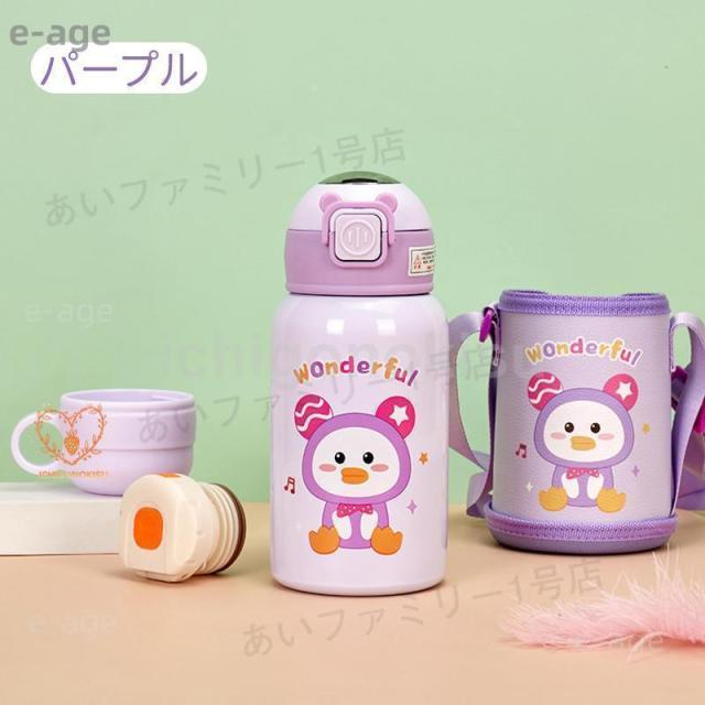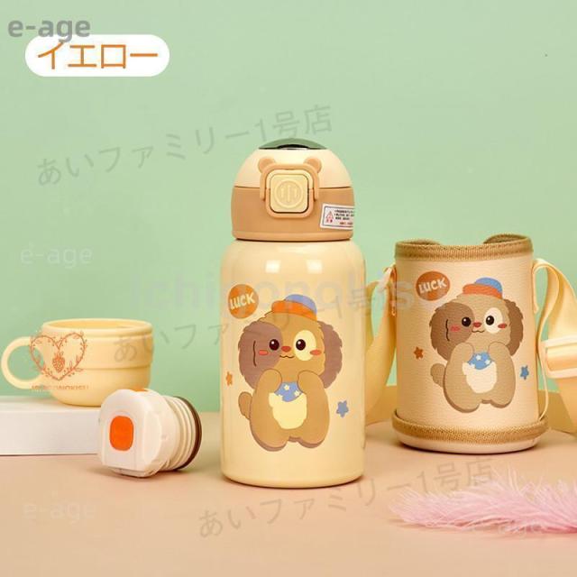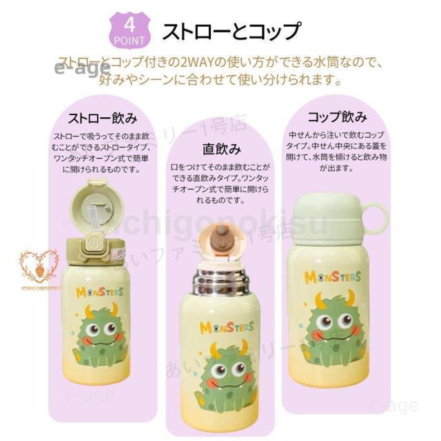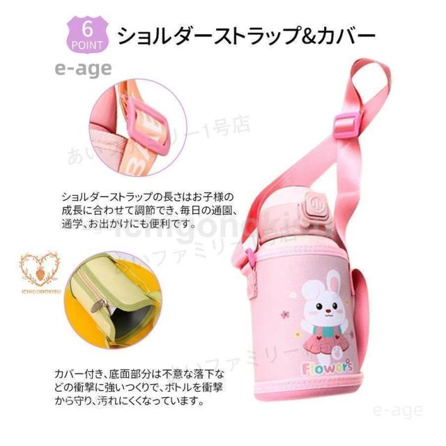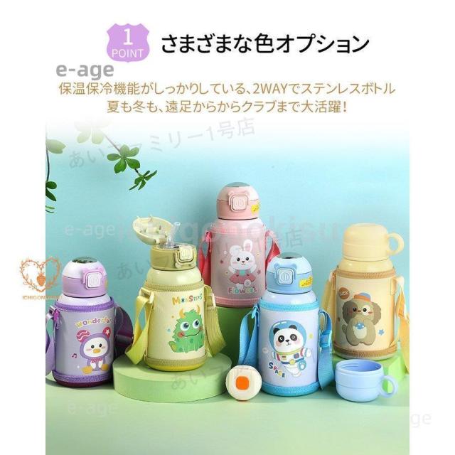 水筒 キッズ 子供 2WAY 直飲み コップ付 ボトル 600mL 保温 保冷 ワンタッチ ストラップ ステンレス 保育園 幼稚園 遠足 運動会 女の子 男の子 ボトル ベルト付