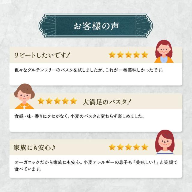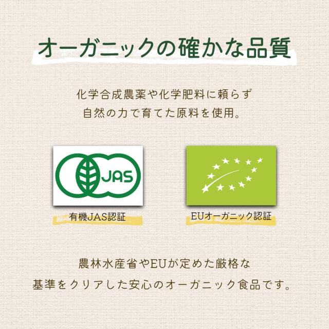 有機JAS認証・EUオーガニック認証を取得しており、小麦アレルギーの方や小さなお子さまのいるご家庭でも安心。 グルテンフリー生活を始めたい方に、ぜひお試しいただきたい一品です。