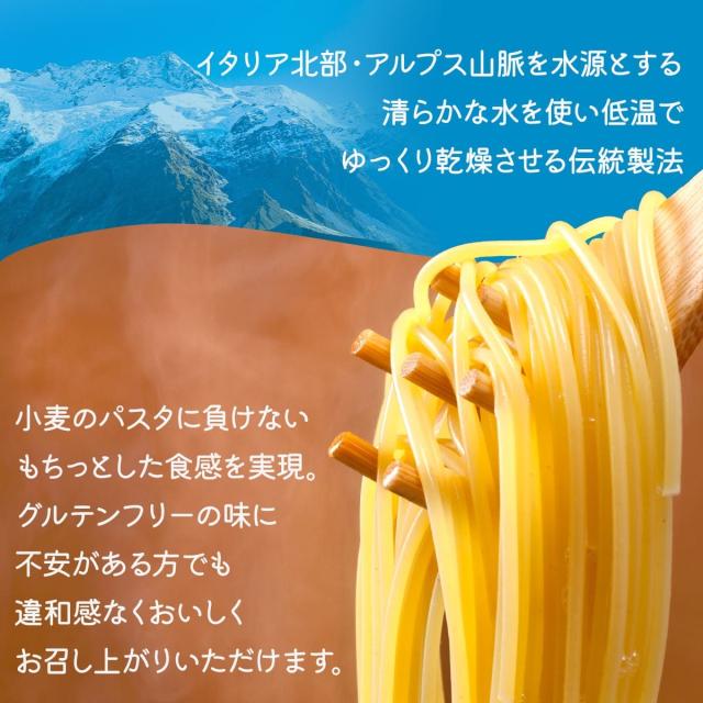 低温でじっくりと乾燥させる伝統製法により、小麦パスタに劣らない“もちっ”とした食感を実現。グルテンフリーの味に不安がある方にも、違和感なく美味しくお召し上がりいただけます。