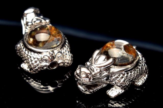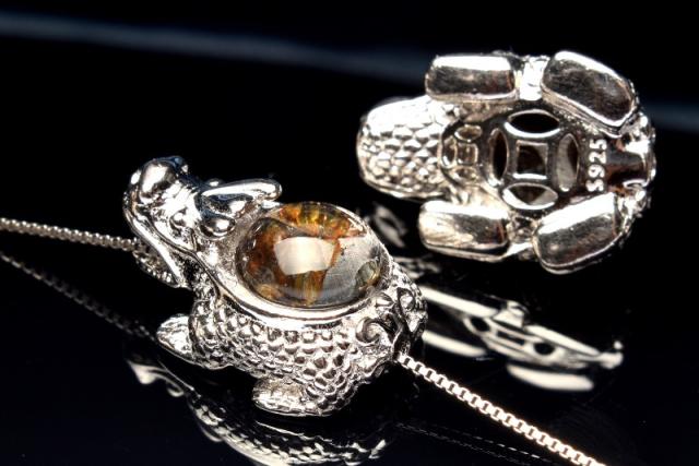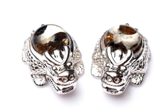 シルバー925◇希少 パラサイト隕石 8mm 龍亀 ペンダントトップ 1個売り _PRG2279