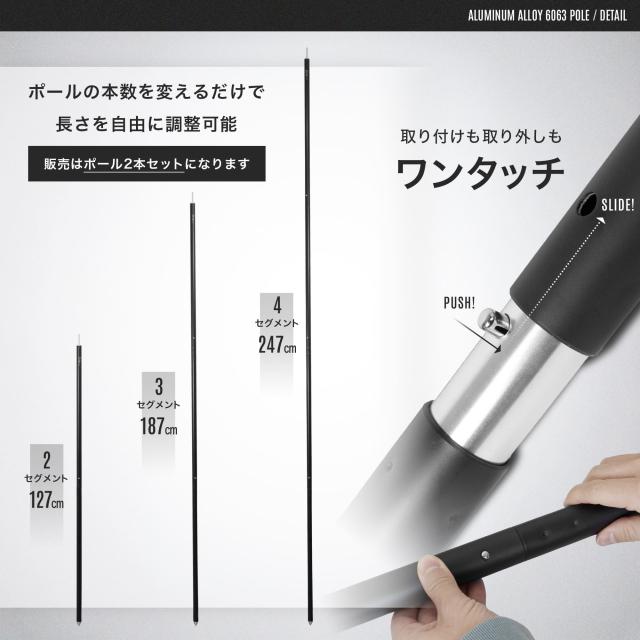 【4本の連結ポール】 分割式なので本数を変えるだけで長さ調整可能(2本・3本・4本)の万能ポール。