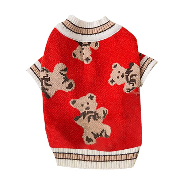 Souher ペット服 犬用セーター 秋冬 犬 服 ニットドッグウェア 熊の柄 防寒 カーディガン 毛糸 ニット 厚い 猫服セーター 伸縮性あり 小中型犬 防風 保温 犬猫洋服 散歩着 記念撮影 お出か