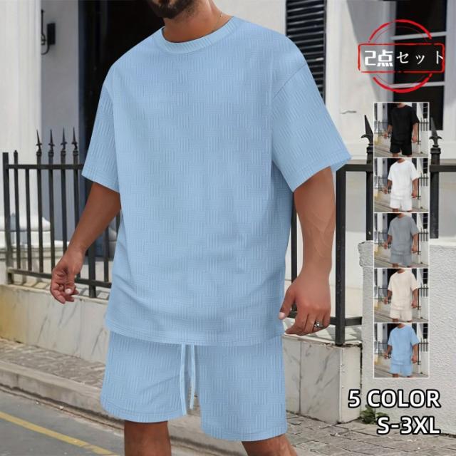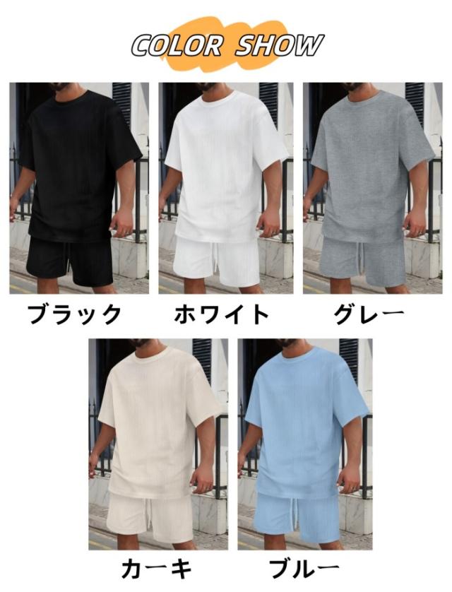 セットアップ メンズ 大きいサイズ 半袖 2点セット 上下セット トップス tシャツ パンツ ジャージ スウェット 無地 カジュアル 夏 新作