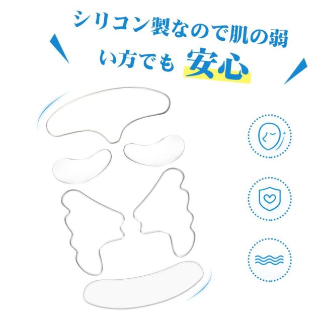 おでこや眉間のシワにお悩みに。貼って寝るだけ、寝ている間に保湿ケアしながらシワをストレッチ。シリコン製で洗って繰り返し使えるタイプ。