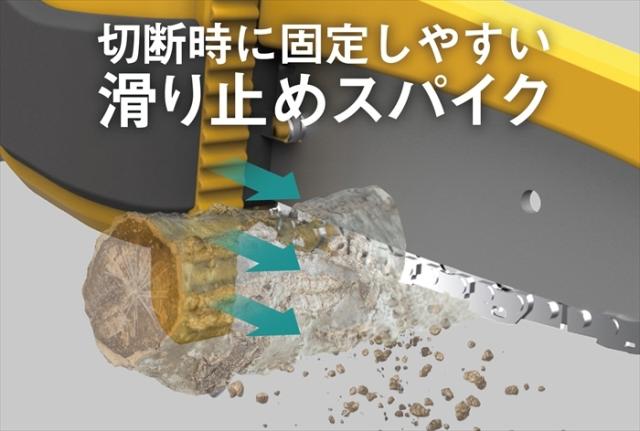 切断時に固定しやすい滑り止めスパイク。