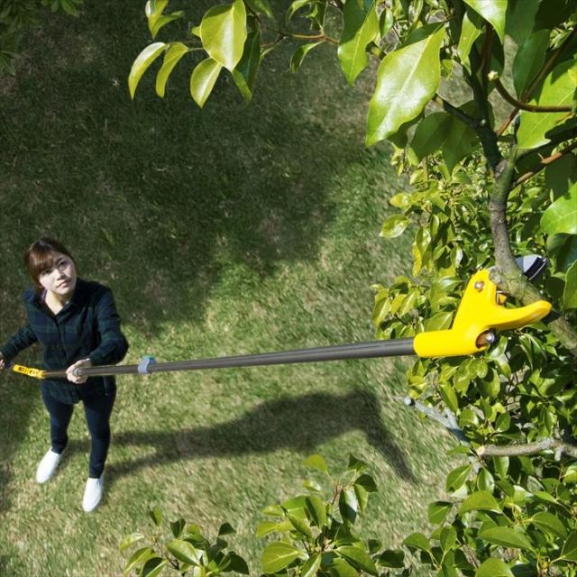| 楽に軽く切れる新構造ハンドル!(特許出願中) 従来品はハンドルを手で握る為、握力が必要でしたが、本品はハンドルを腕の力で押すタイプ。 同じ力をかけて刃に伝わる力の差はなんと従来品の4倍(289kgf)の高枝切鋏。 14段階式伸縮機能付きで3.05mの高い場所も届く便利アイテムです。 枝や果実を切ってつかめる可動式キャッチ機能付き。 鋏の切断最大径約Φ2cmを超えても、別売のノコギリ刃(No.398-1、No.398-3、No.398-5)を取り付ければ、更に作業の幅が広がります。 (※ノコギリを使用して枝をカットした場合、キャッチはできません。) |
