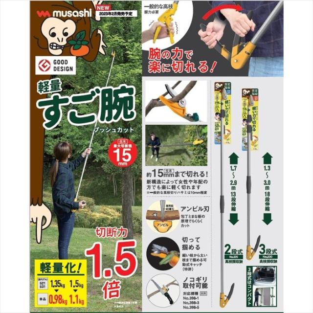 | 【高枝切狭|本体】 軽量すご腕プッシュカット ● 2段式アンビル刃 #520 ● 3段式アンビル刃 #530 すご腕プッシュカット ● 2段式アンビル刃 #521 ● 3段式アンビル刃 #531 替え刃式 ● 2段式アンビル刃 #621 ● 3段式アンビル刃 #6321 ※このページは[軽量すご腕プッシュカット 3段式アンビル刃 #530]を販売しております。 |