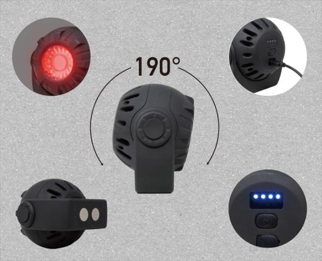 ・ 明るさ/電池寿命※満充電時:【強】150lm/3h、【弱】60lm/6h、【赤色点滅】 ‐/9h
