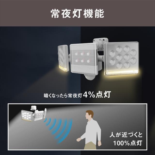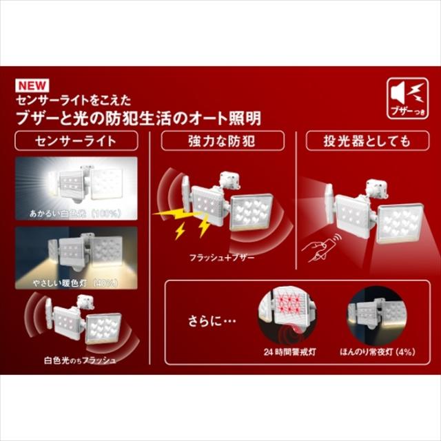 | 高機能+防犯対策向きのコンセント式センサーライト。 センサーライトを超えたブザーと光の防犯生活のオート照明。 フリーアーム式で圧倒的な自由度を実現します。 |