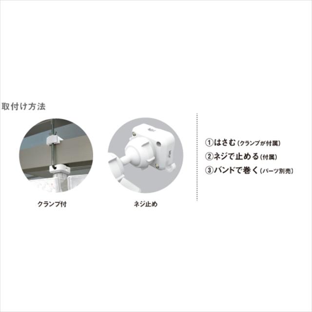 | リモコン×1、ボタン電池CR2025 (リモコン付属)、取り付けネジ×2、コンクリート用プラスチックプラグ×2、クランプ台×1、蝶ナット×1、L型ボルト×1、ネジキャップ×1 |