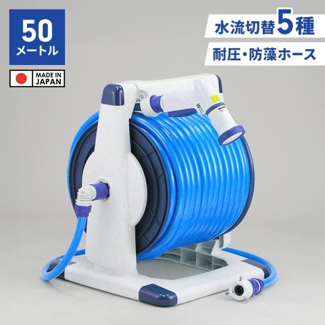 ホース ホースリール 50m 散水ホース 大容量 シャワーホース 散水用品 多機能 ワンタッチで通水・止水 水やり 家庭菜園 便利