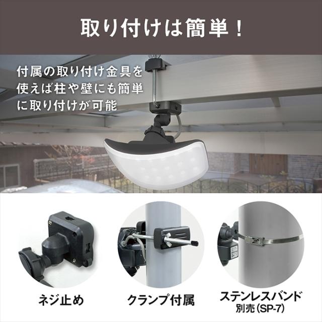 | ・ 電源/電圧:AC100V電源(コード長:3m)、50/60Hz ・ 消費電力:・点灯時: 27W / 常夜灯:4W / ・待機時:1.0W以下 ・ 電球 ・電球種類:高輝度白色LED 27W 全光束/2200ルーメン(点灯時)/220ルーメン(常夜灯) LED設計寿命(※1)/40,000時間 ・ センサー機能:探知方式/焦電型赤外線センサー ・探知範囲:約360° 最遠約8m 後1m 左右3m ・ 点灯時間:約5秒〜約5分 ・ 昼夜切り替え機能: ・昼:周囲が明るくても暗くても点灯 ・夜:周囲が暗い時のみ点灯 常夜灯/周囲が暗くなると常夜灯(明るさ10%)が点灯 周囲があかるくなると消灯 ・ ひもスイッチ長さ:350mm ・ クランプ取り付けサイズ ・厚み:最小約15mm〜最大約100mm・パイプ径/最小約30mm〜最大約85mm |